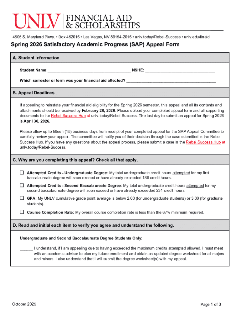 Key Features of the UNLV Spring 2026 SAP Appeal Form