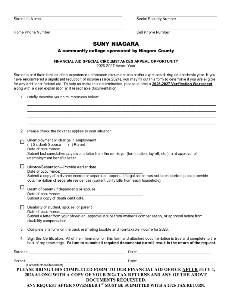By utilizing the financial aid special circumstances appeal form, families can effectively communicate their need for additional assistance, increasing their chances of securing essential funding for education. It provides a structured way to document circumstances that deviate from the original financial aid application.