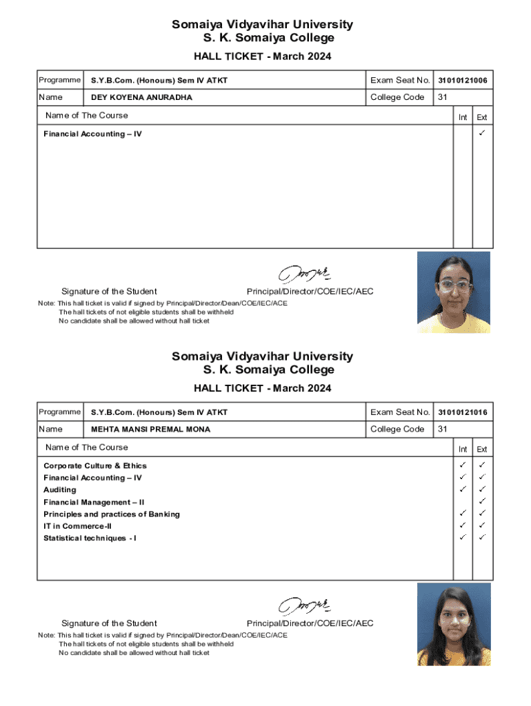 The Hall Ticket for March 2024 is a crucial document for students participating in the ATKT exams. This ticket serves as proof of identity and enrollment in various courses at the Somaiya Vidyavihar University. Students must ensure their ticket includes essential details such as the student's name, seat number, and course information.