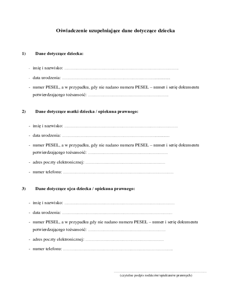 Parents and legal guardians are eligible to submit the Child Data Supplement Declaration to provide required information about their child for accessing family support programs in Poland.