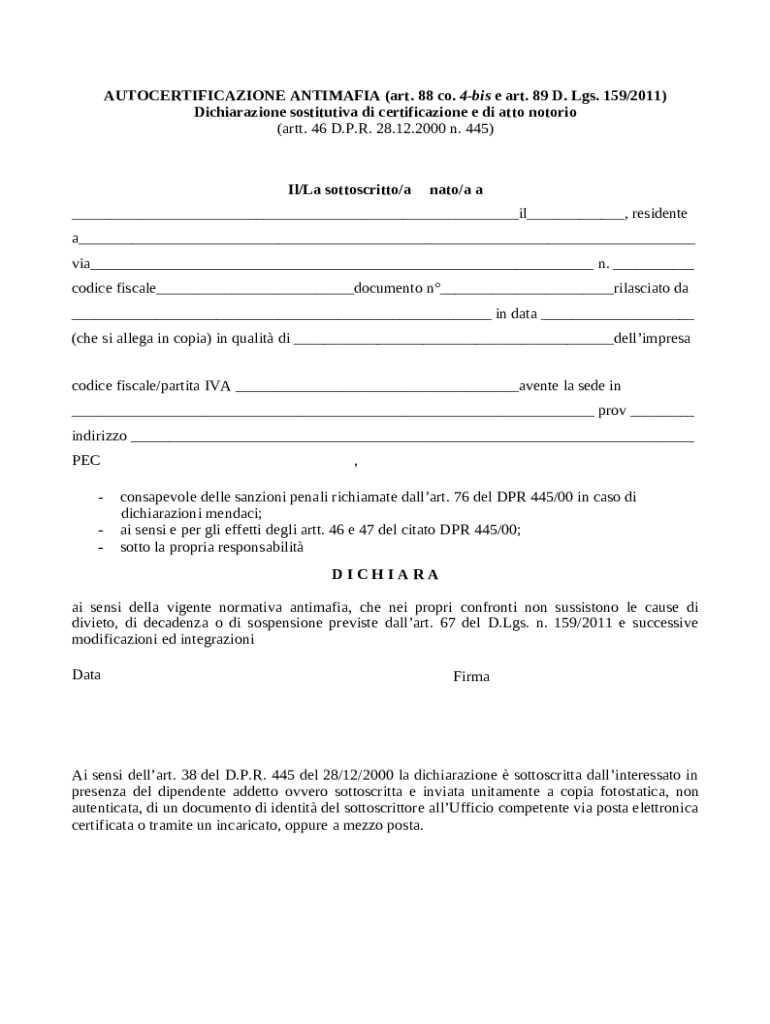 Guida completa a italian antimafia self-certification form