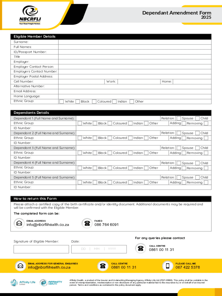 Get the free Dependent Amendment Form