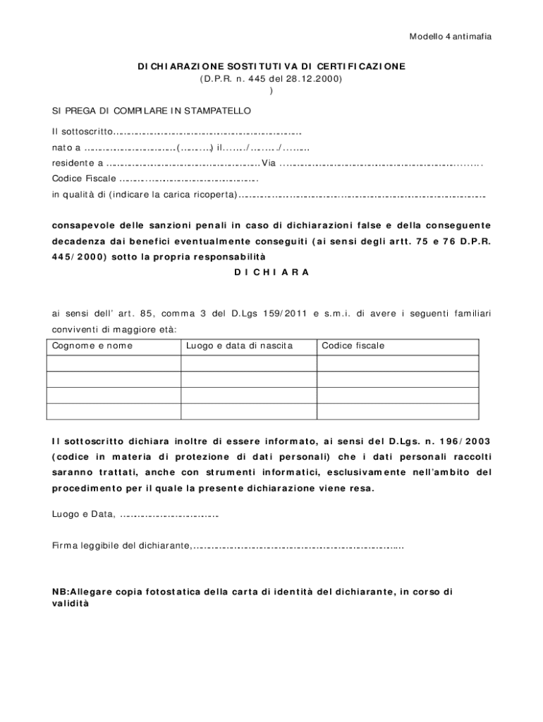 Ottieni il gratuito SI PREGA DI COMPILARE IN STAMPATELLO