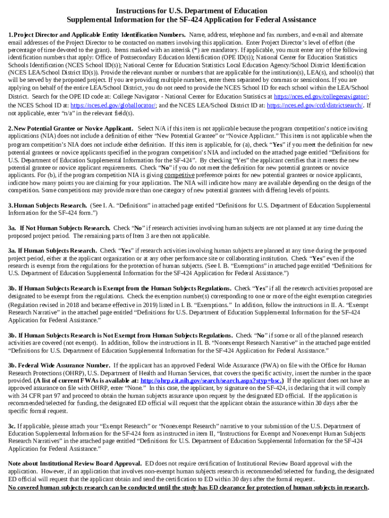 The SF-424 Application for Federal Assistance is a vital form for individuals and organizations applying for federal grants through the U.S. Department of Education. This application is designed to capture essential information such as the applicant's qualifications and project details, helping streamline the funding process.