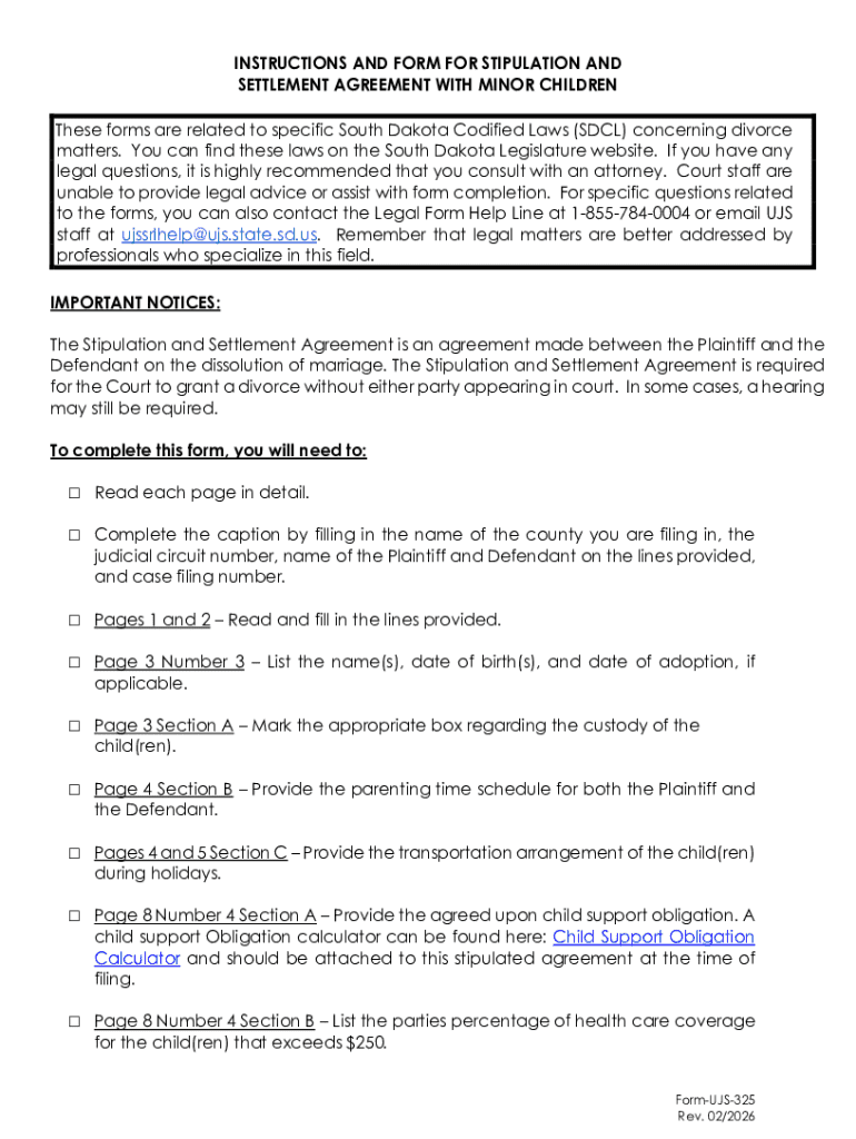 Any divorcing couple in South Dakota who has minor children can use this form to outline their custody, support, and property arrangements.