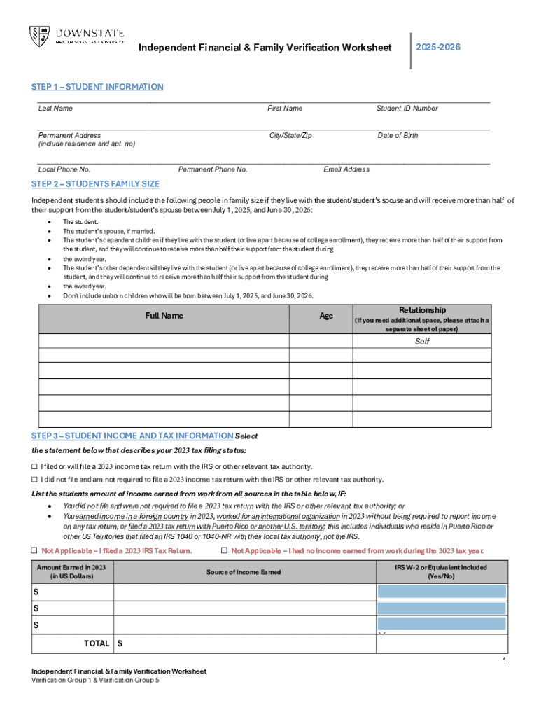 Get the free Independent Financial & Family Verification Worksheet 2025-2026