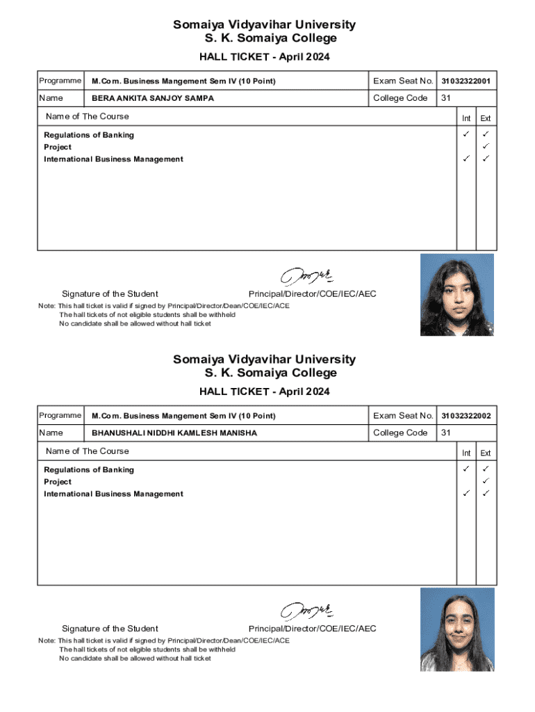 Get the free Somaiya Vidyavihar University Hall Ticket