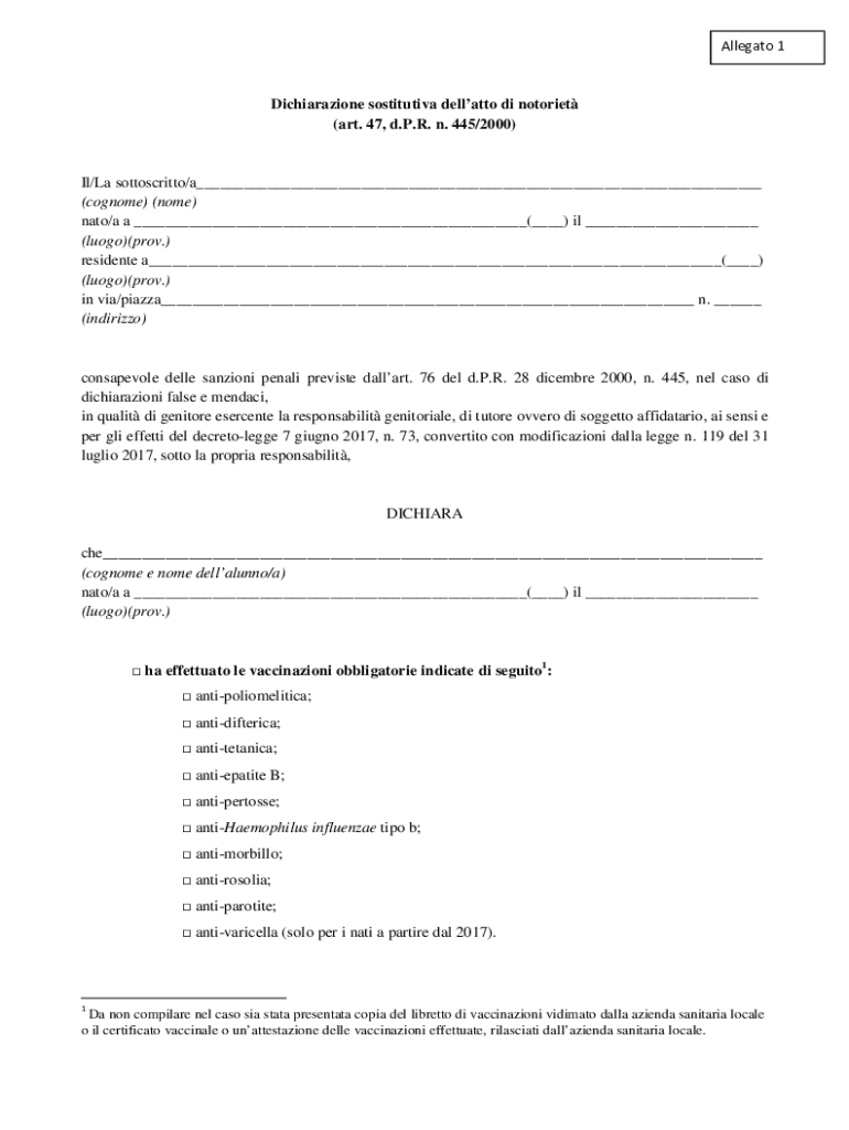 Il modulo deve essere compilato dai genitori o dai tutori legali degli studenti. È necessario per dimostrare lo stato vaccinale dello studente.