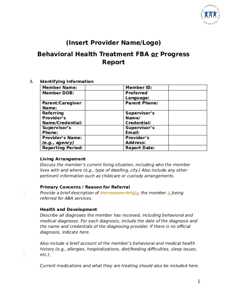 Get the free Behavioral Health Treatment FBA Progress Report