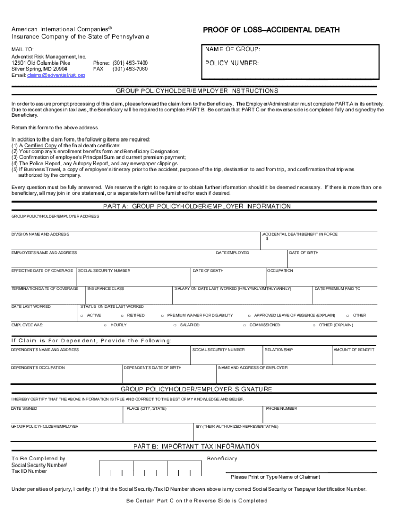 Filing Process and Submission Methods for the Proof of Loss—Accidental Death Form