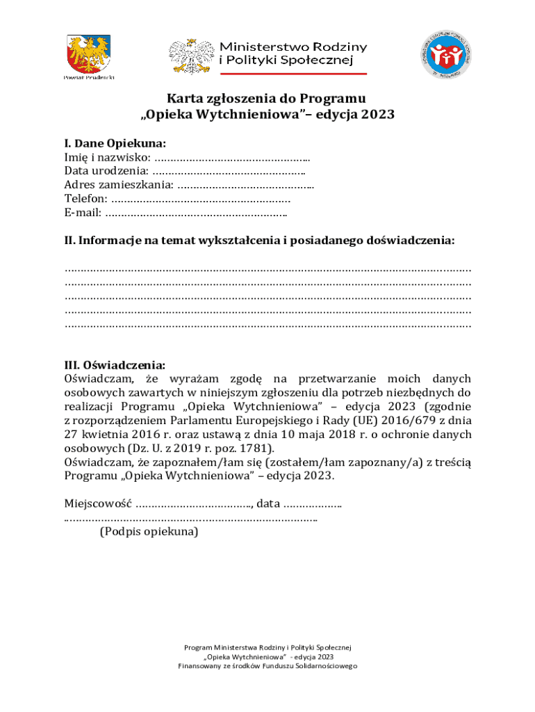 What is the Opieka Wytchnieniowa Application Form 2023?