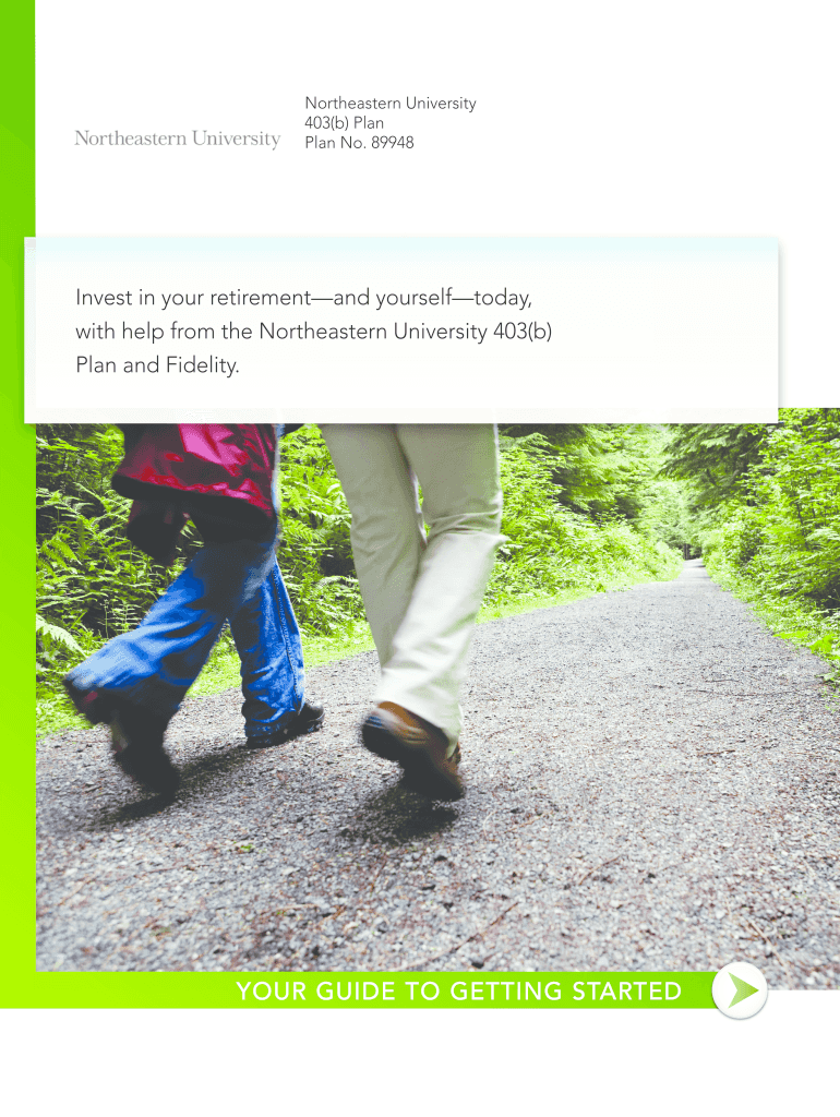Northeastern University 403(b) Plan No. 89948 Invest in your retirement and yourself today, with help from the Northeastern University 403(b) Plan and Fidelity. YOUR GUIDE TO GETTING STARTED Invest