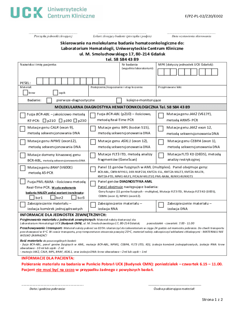 F/PZPL02/Z20/E002............................................................. Piecztka jednostki zlecajcej............................................................. Lekarz zlecajcy badanie (piecztka