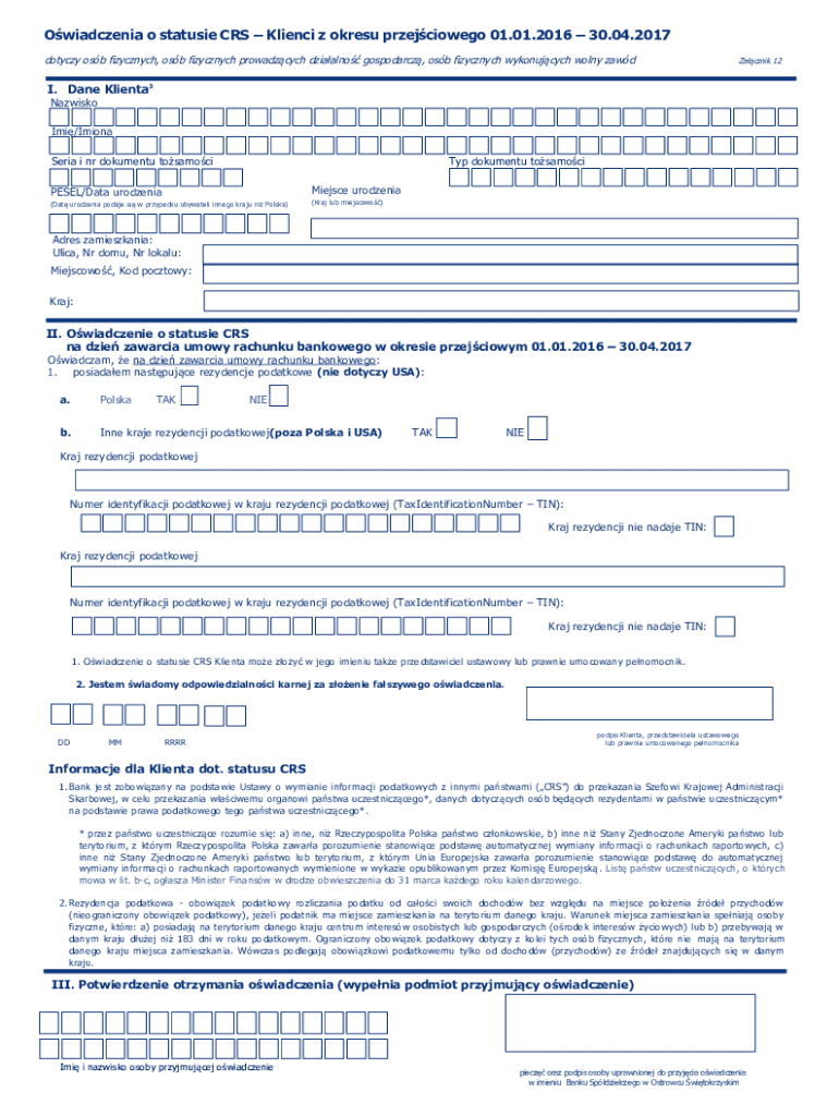 Individuals or businesses in Poland that need to declare their tax residency for bank accounts opened during the specified period are eligible to use the CRS Status Declaration Form.