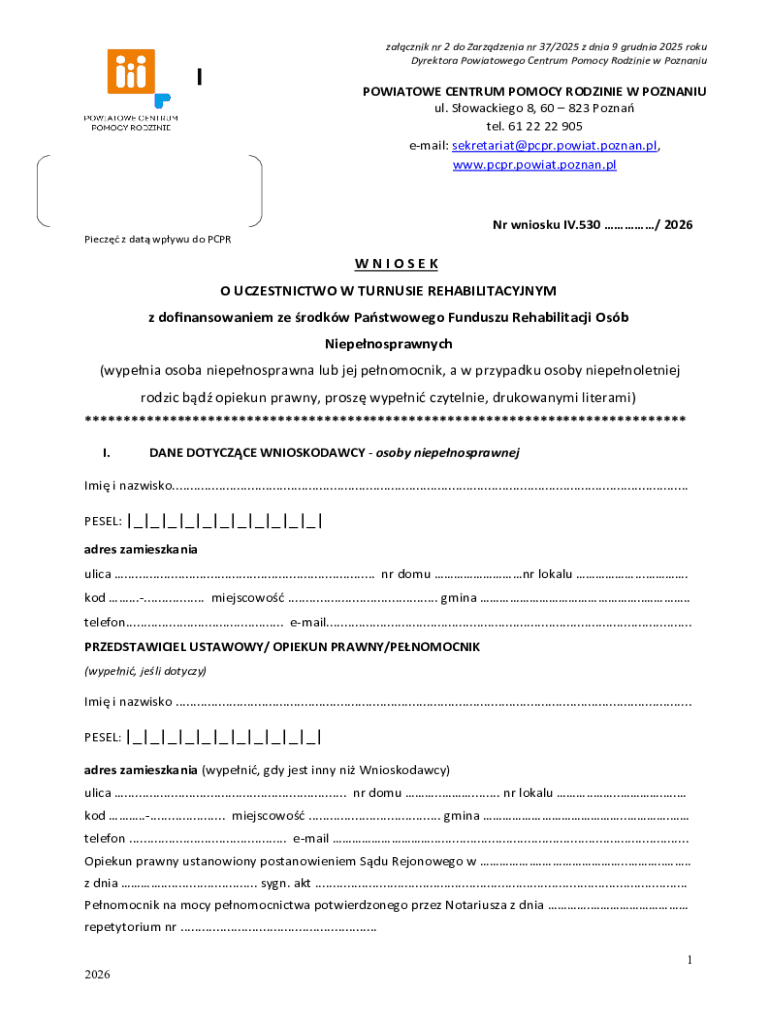 The Application for Rehabilitation Stay is a government form used by individuals in Poland to apply for participation in a rehabilitation stay funded by the State Fund for the Rehabilitation of Persons with Disabilities.