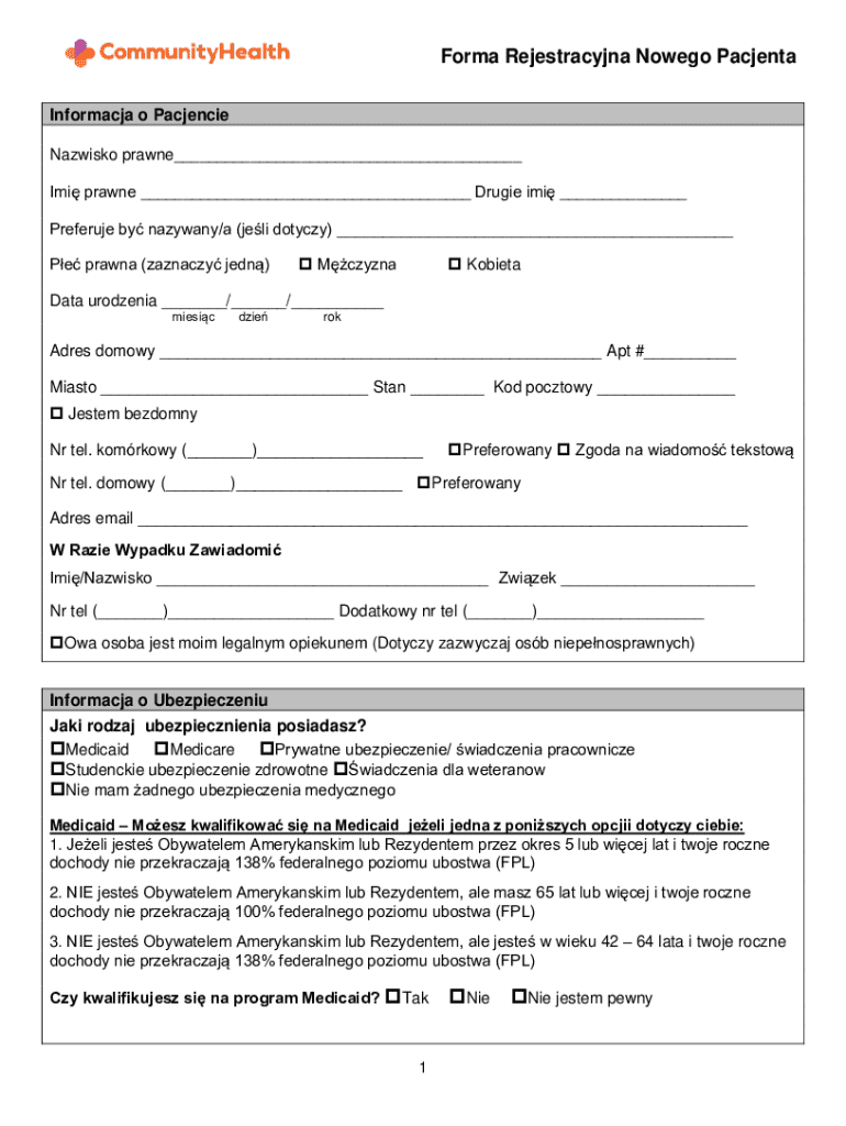 This form is necessary for any patient visiting a healthcare provider for the first time. Understanding the importance of this community health form, clinic staff must ensure that it is thoroughly completed and properly filed. Additionally, specific groups may have unique requirements based on their healthcare needs or insurance guidelines.