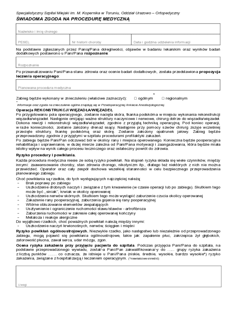 3.Before filling out the form, gather necessary information such as the patient's name, PESEL number, history of the illness, and any relevant medical documents pertaining to the procedure.