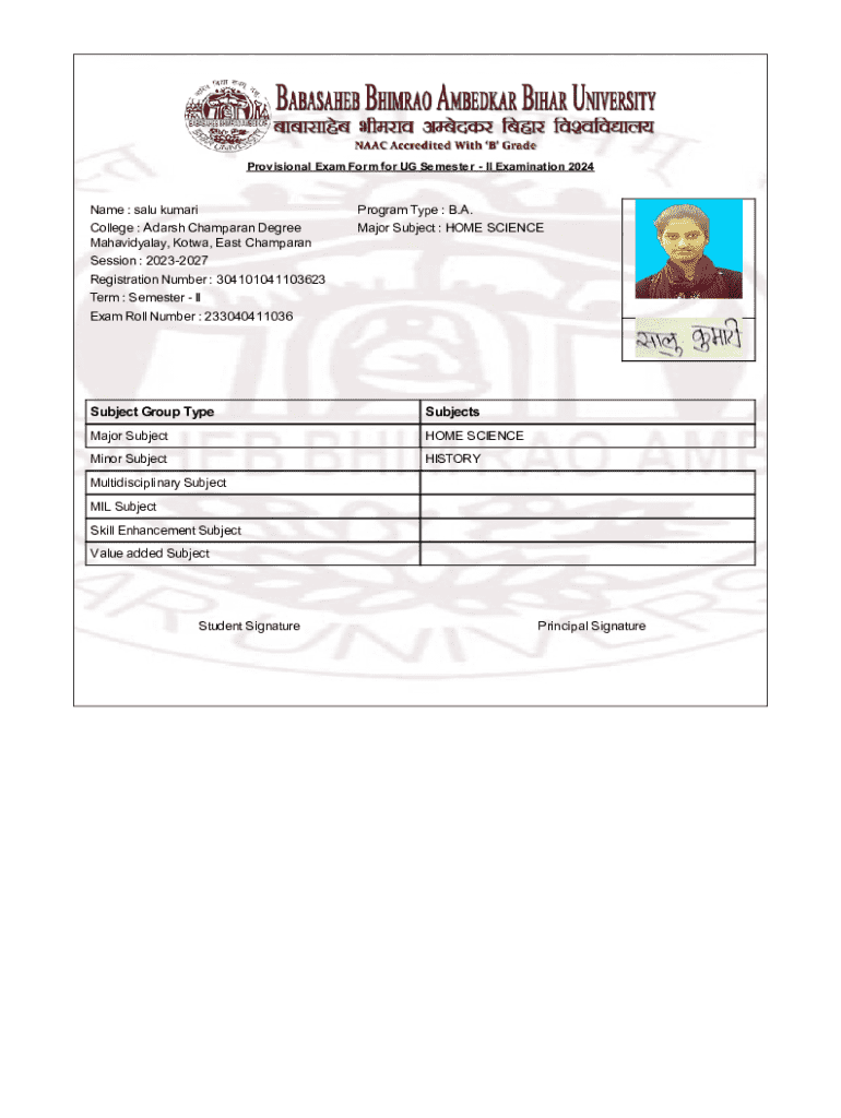 Get the free Provisional Exam Form for UG Semester II