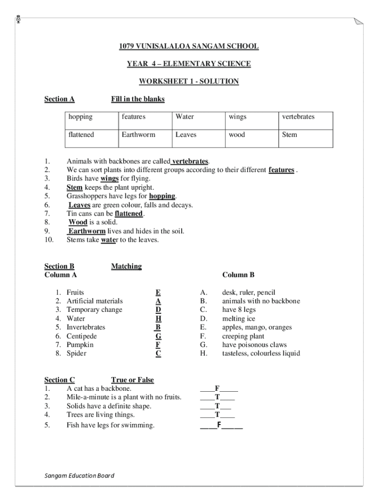 How to Fill Out the Year 4 Elementary Science Worksheet Online