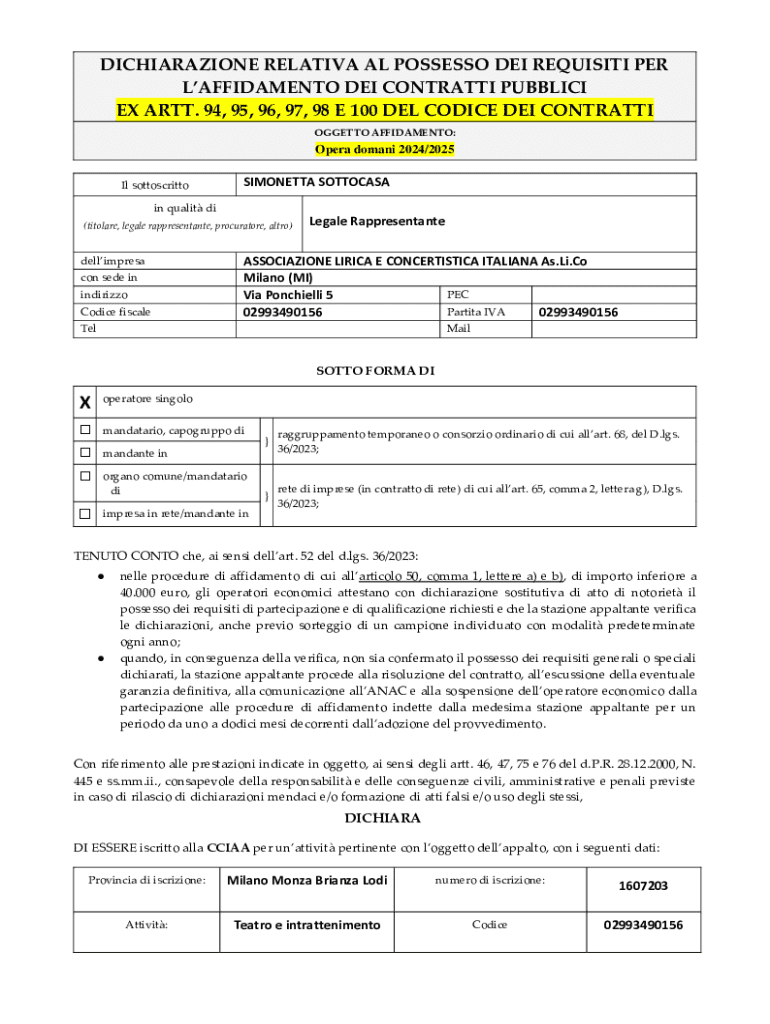Ottieni il gratuito Italian Public Contract Qualification Declaration