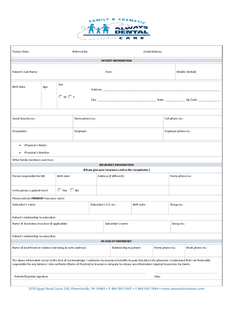 The Patient Medical History Form is designed for dental patients and their guardians. It is required for anyone seeking dental treatment at Always Dental Care.