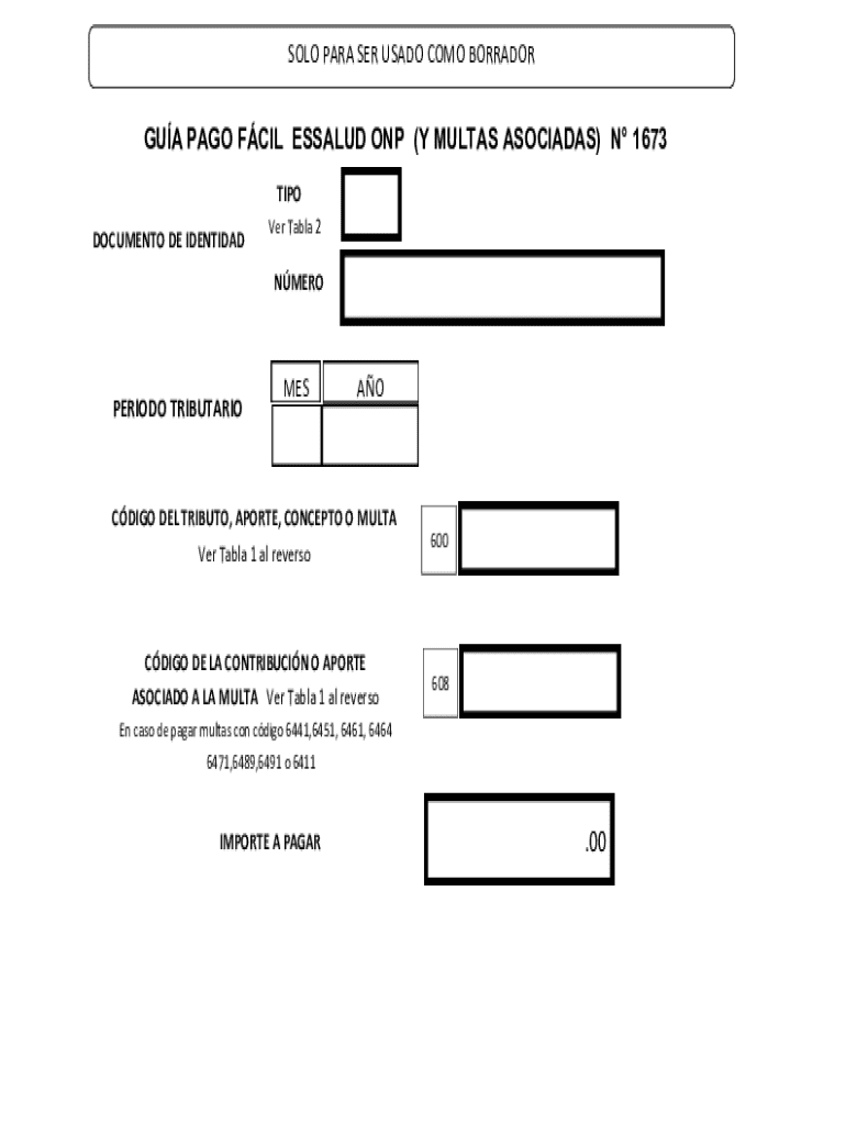 Ejemplo o Muestra de un Formulario Pago Fácil Essalud ONP Completo