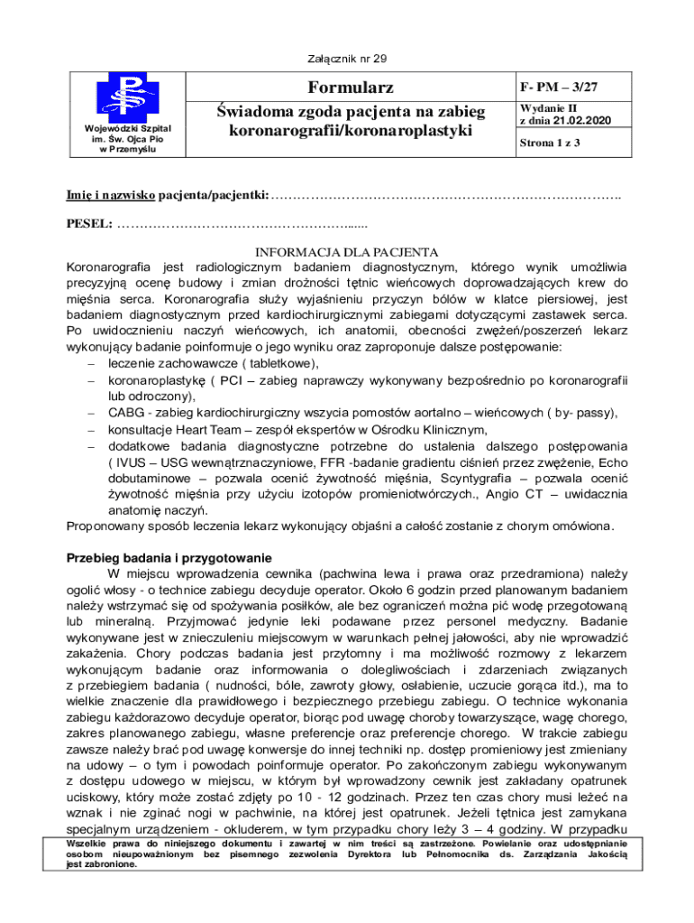 Get the free Patient Consent Form for Coronarography Procedure