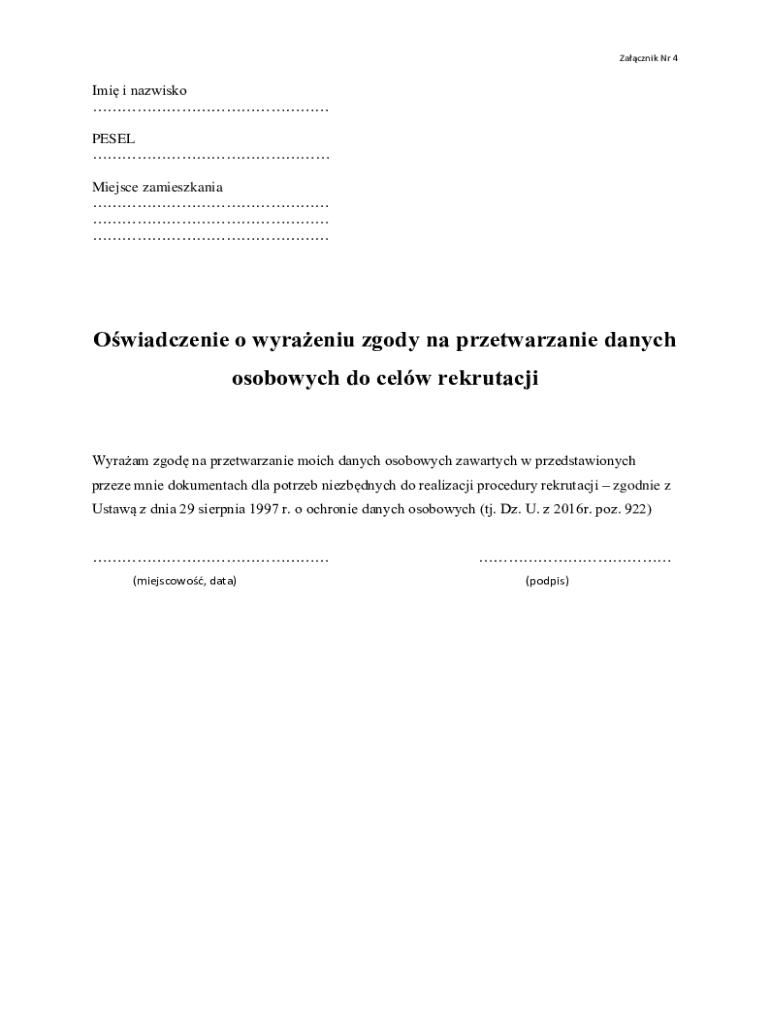 The Data Processing Consent Form is a document used by job applicants in Poland to provide consent for the processing of their personal data during the recruitment process.