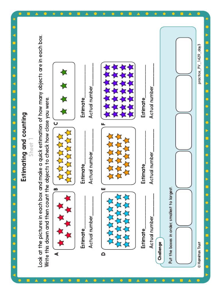 The estimating and counting worksheet is an essential tool designed for educational purposes, specifically aimed at helping students hone their estimating and counting skills. This worksheet is structured with various sections to facilitate classroom use, allowing teachers to integrate math practice seamlessly into their lesson plans.