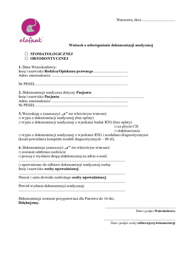 The Medical Records Request Form is a vital document in Poland that allows patients to formally request access to their dental or orthodontic records. Understanding the purpose of this form is essential for individuals seeking to maintain their medical history and facilitate discussions with healthcare providers. Accessing dental or orthodontic records ensures that patients can receive comprehensive care and make informed decisions about their health.