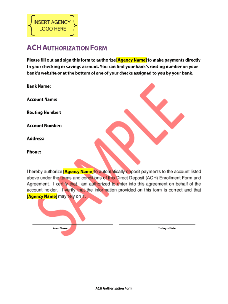The Direct Deposit ACH Enrollment Form is a financial document used by account holders to authorize automatic deposits into their specified bank accounts.