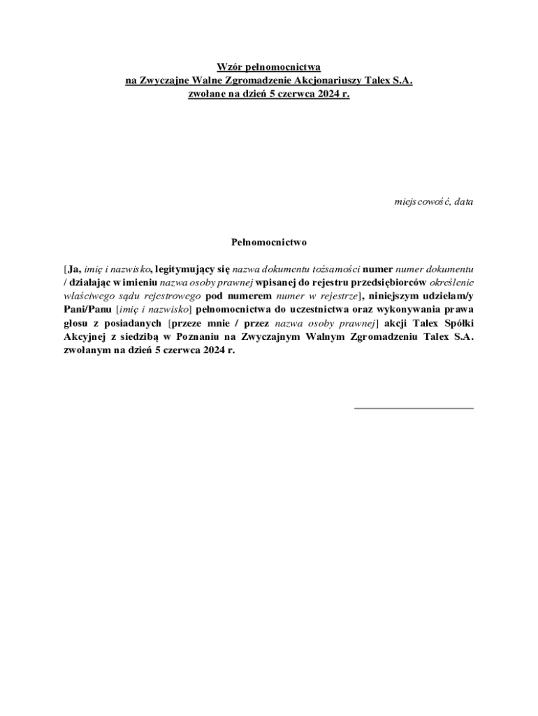 Get the free Power of Attorney for Talex S.A. Annual General Meeting