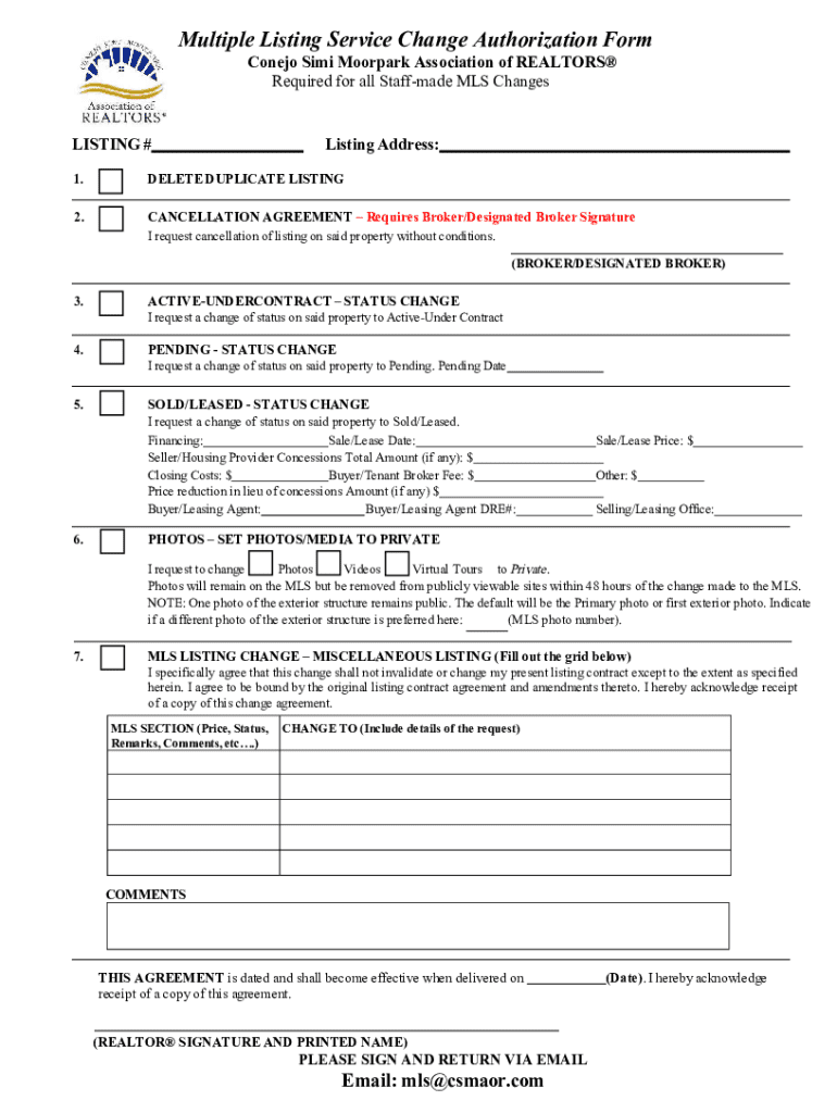 Get the free Multiple Listing Service Change Authorization Form