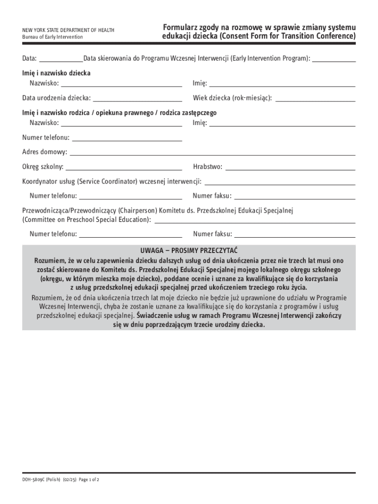 Get the free New York State Early Intervention Transition Consent Form