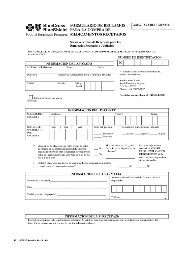 Este formulario está diseñado para empleados federales y jubilados que necesiten reclamar beneficios por medicamentos prescritos adquiridos a través de farmacias. Deben ser beneficiarios del Plan de Beneficios por Servicio.