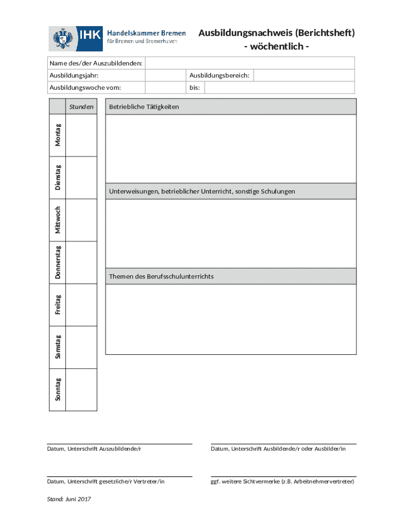 So füllen Sie das Formular ausbildungsnachweis berichtsheft template aus