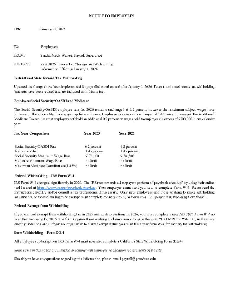 Employers in California are required to complete this notice to inform their employees of the income tax changes for 2026, including updated federal and state withholding rates.