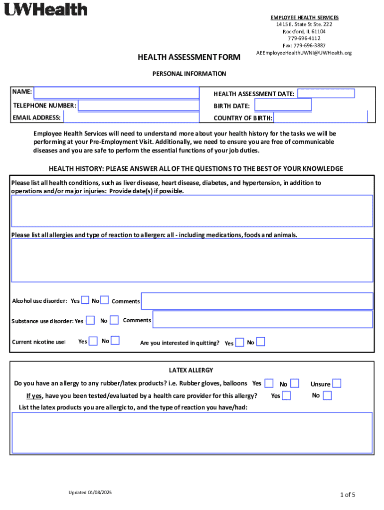 Comprehensive Guide to employee health assessment form