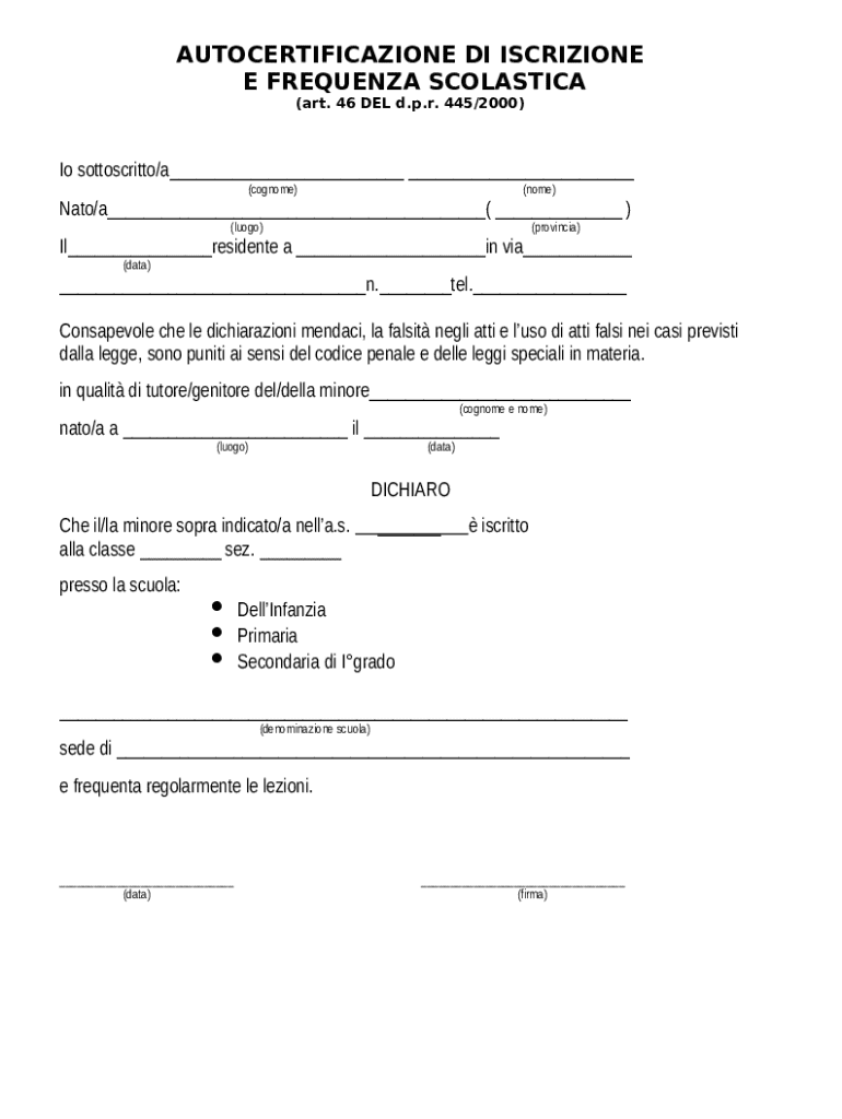 Ottieni il gratuito Italian School Attendance Declaration