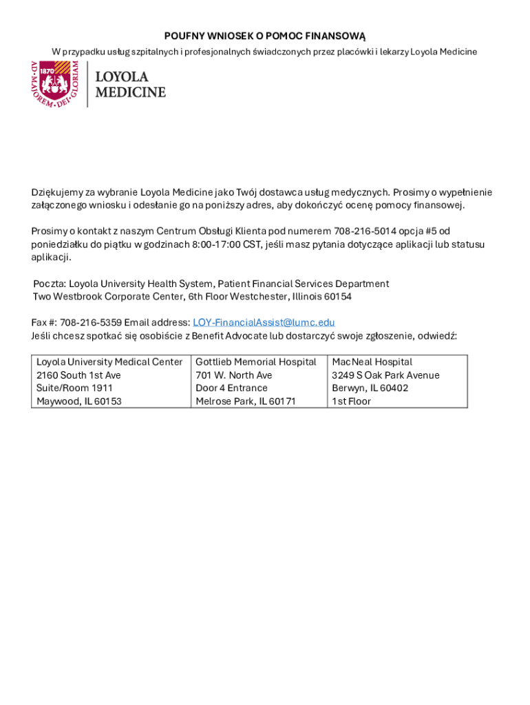 The Loyola Medicine Financial Assistance Application is a vital tool that helps patients access financial aid for medical services provided at Loyola Medicine facilities. This application is essential, as it enables individuals to receive the healthcare they need without the burden of overwhelming costs.