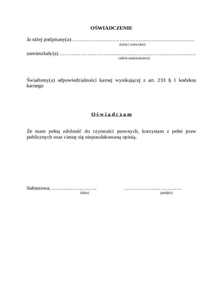 The Affidavit Form is a legal document used by individuals in Poland to make a sworn statement of fact.