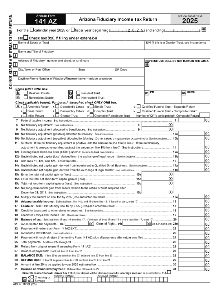The Arizona Form 141, officially known as the Arizona Fiduciary Income Tax Return for 2025, plays a crucial role for fiduciaries responsible for managing estates and trusts in Arizona. This form is required to report income generated by these entities and calculate their tax liabilities. Fiduciaries, such as personal representatives of an estate or trustees of a trust, must file this form to ensure compliance with Arizona tax laws.