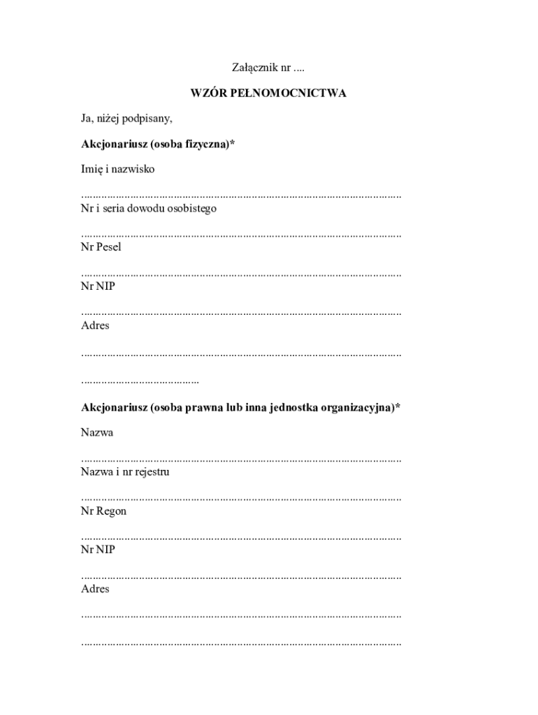 You will need to provide your identification details such as your ID number, PESEL, NIP, and a valid identification document for your proxy.