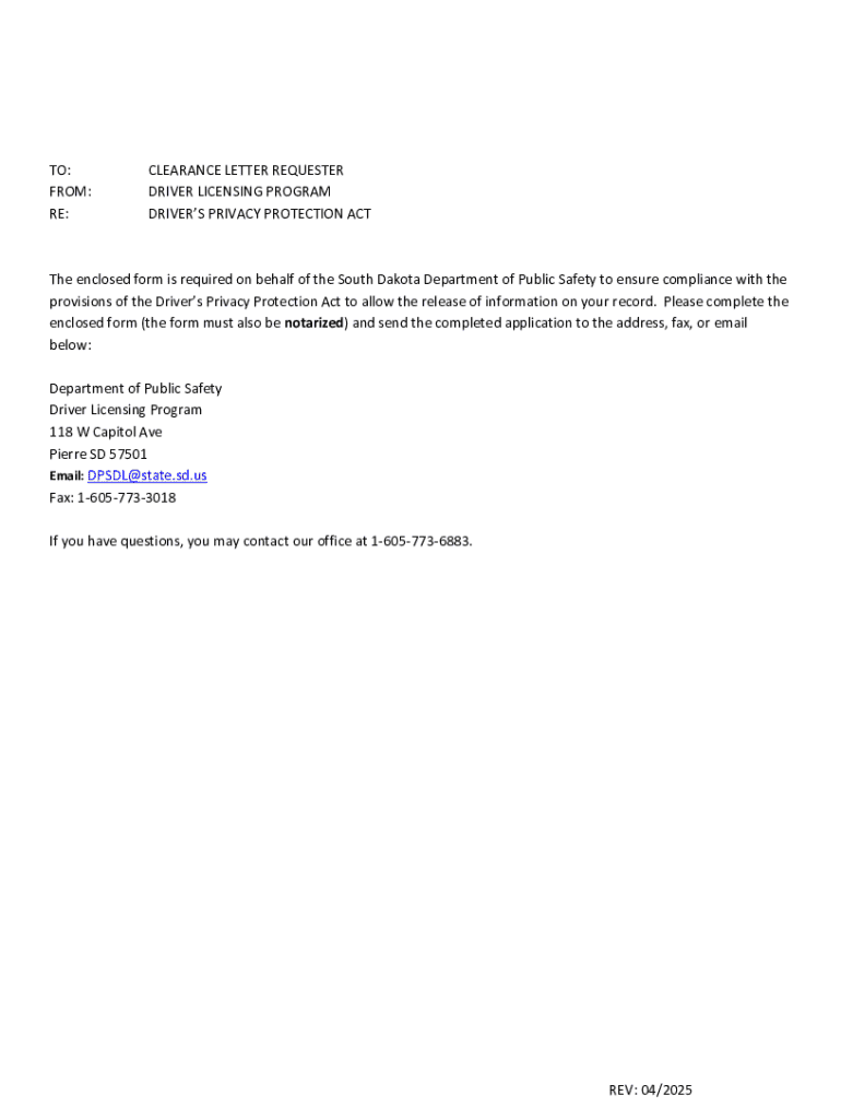 Key Features of the South Dakota Driver’s Privacy Protection Act Clearance Letter Request