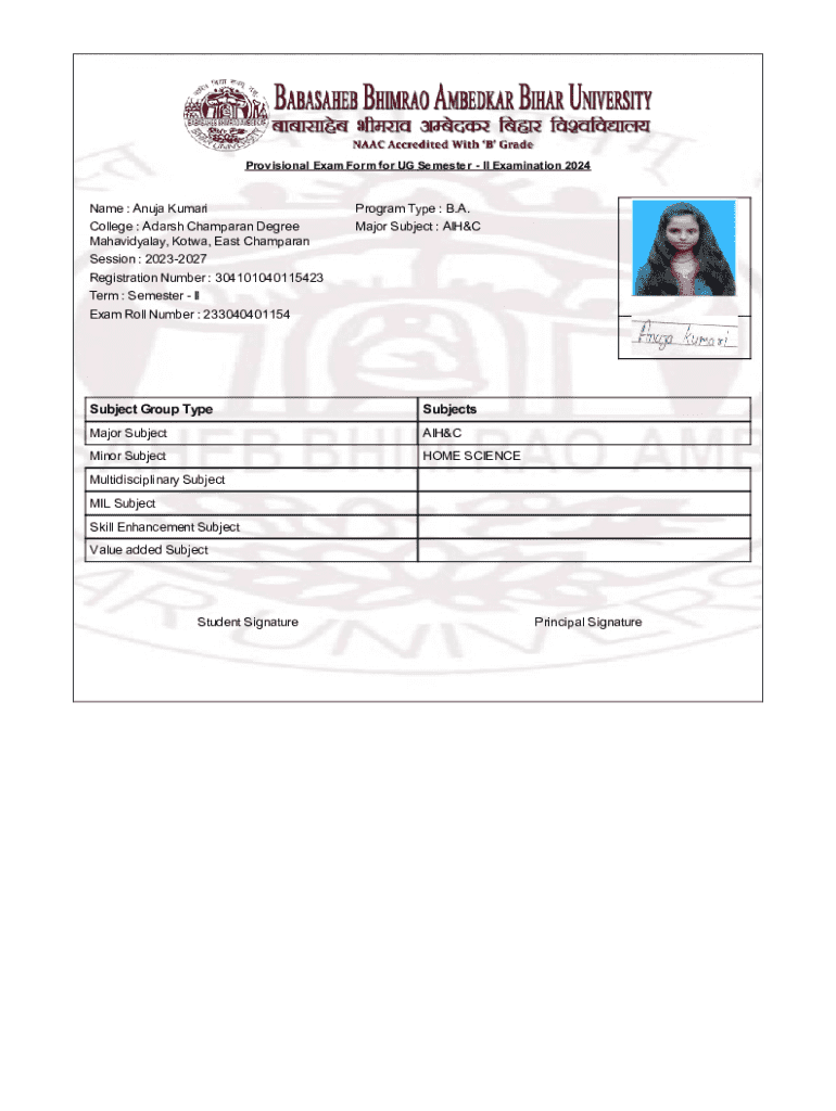 The Provisional Exam Form plays a crucial role for undergraduate students in Bihar as it is essential for their academic registration. This form allows students to officially register for the UG Semester II exams, ensuring that their details are documented for evaluation and results.