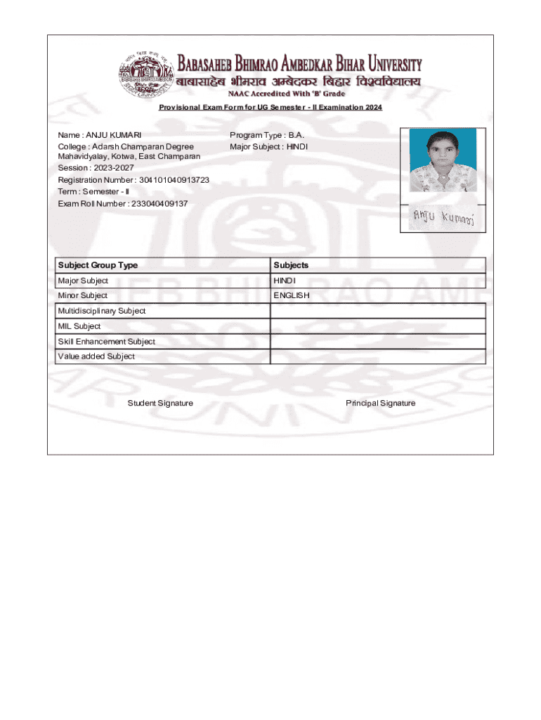 The Provisional Exam Form is primarily for undergraduate students enrolled in colleges in Bihar who are intending to take their Semester II exams in 2024.