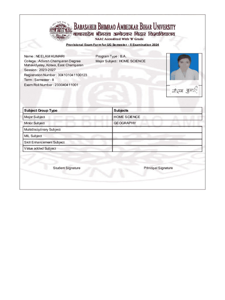 Get the free Provisional Exam Form for UG Semester II