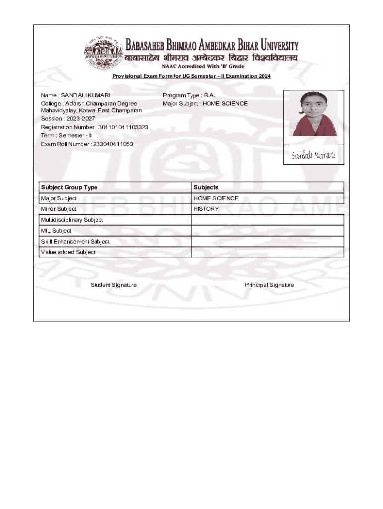 Get the free Provisional Exam Form for UG Semester II