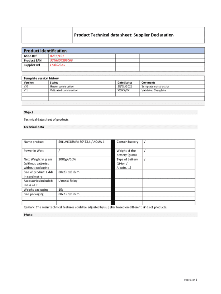The Supplier Declaration Technical Data Sheet provides essential technical information about products. This document plays a crucial role in ensuring product transparency, especially for suppliers who need to convey accurate product specifications to clients. It serves as a formal declaration of the technical features of products, ensuring that all necessary information is accessible.