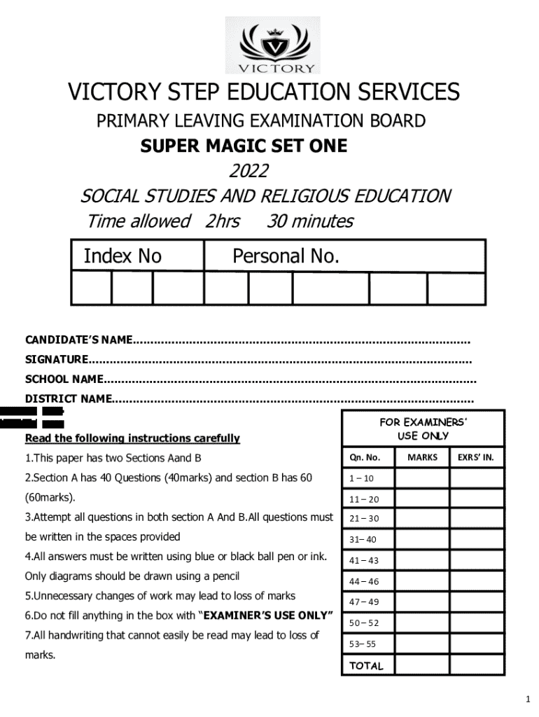 The Uganda Primary Leaving Examination Social Studies and Religious Education form plays a crucial role in assessing students’ knowledge as they transition from primary to secondary education. This examination is pivotal in the Ugandan education system, marking a significant milestone for candidates.